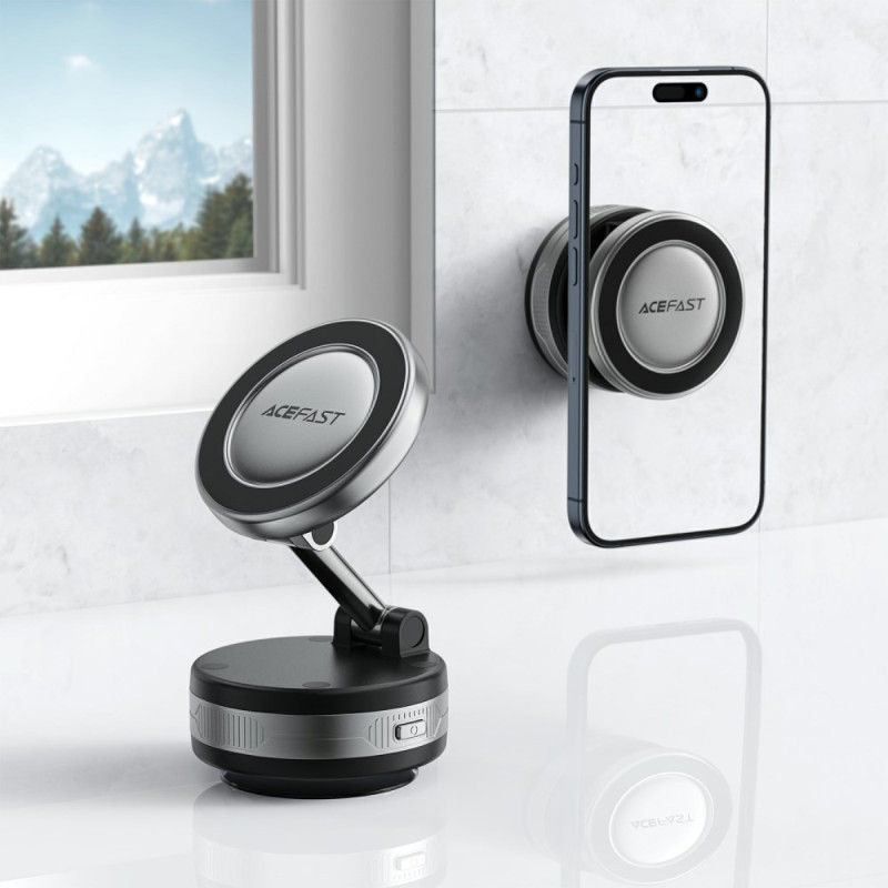 Descubra el soporte magnético ACEFAST con ventosa eléctrica inteligente. Fijación potente y segura gracias a sus fuertes imanes. Compatible con todas las superficies lisas: salpicadero, parabrisas, escritorio, azulejos. Diseño compacto y elegante para una fácil instalación. La solución perfecta para mantener su teléfono seguro tanto en estuche como fuera de ella.