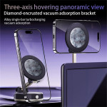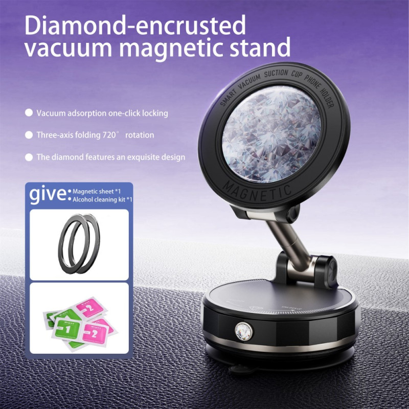 Soporte magnético plegable para teléfono de coche con elegante diseño en resina epoxi y pedrería. Equipado con 17 imanes N52 ultrapotentes para una fijación segura durante la conducción. Ventosa de vacío para instalarlo en el salpicadero o el parabrisas.