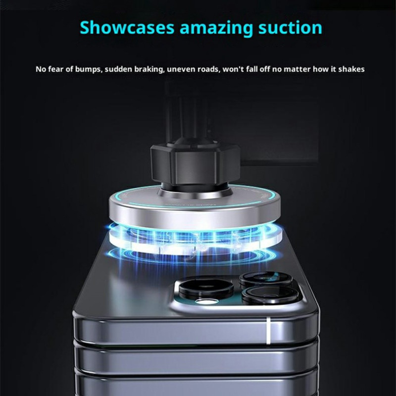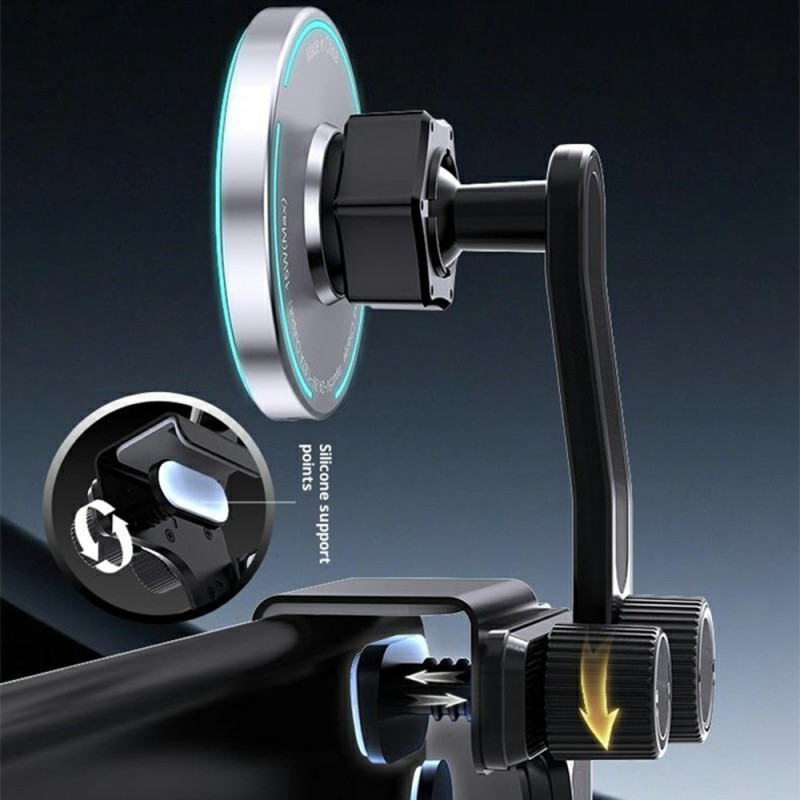 La estabilidad térmica y la eficacia de la carga magnética están ahora garantizadas, incluso bajo la luz solar directa. Diseñado con una base metálica resistente al calor (hasta 80 °C), este soporte elimina la deformación típica de los plásticos. Proporciona 15 W de potencia inalámbrica rápida gracias a un cabezal de aleación de zinc. Los imanes de grado N52 proporcionan una fuerza de sujeción superior, incluso en carreteras con baches. El ángulo es totalmente ajustable para optimizar la línea de visión, y el sistema de doble pomo protege la pantalla durante la fijación.