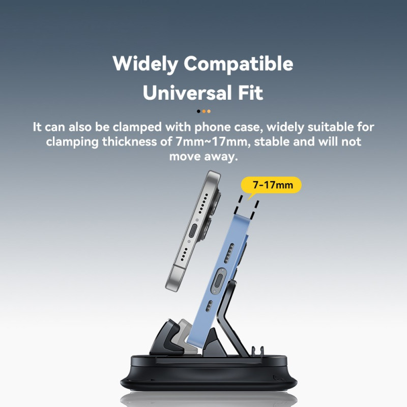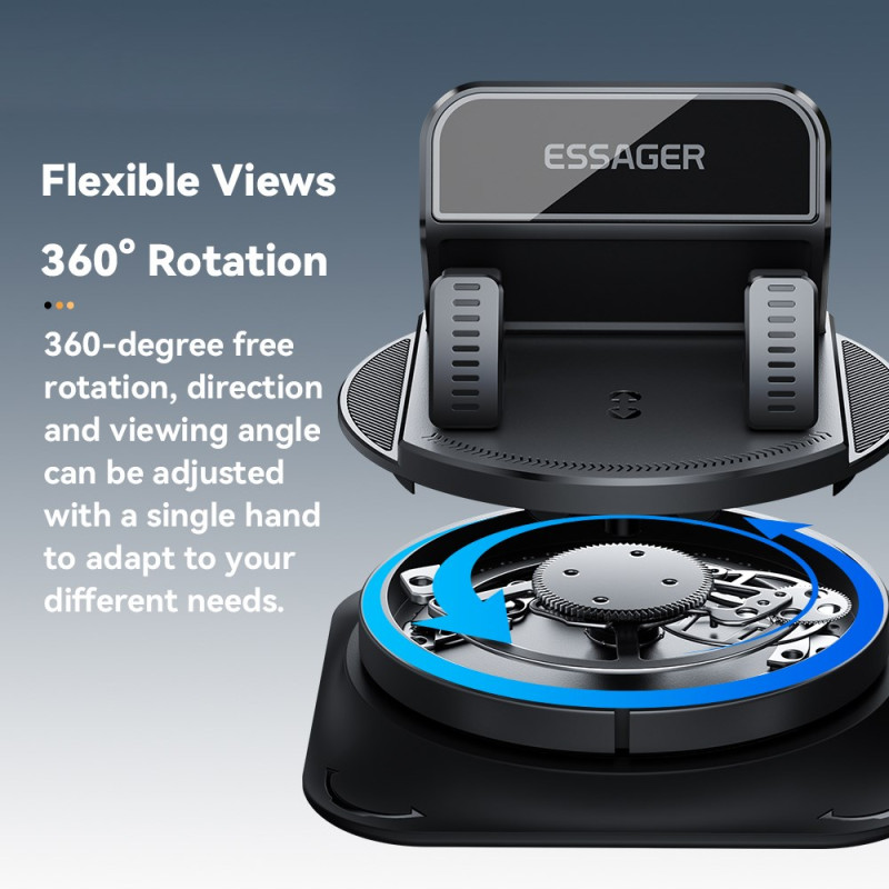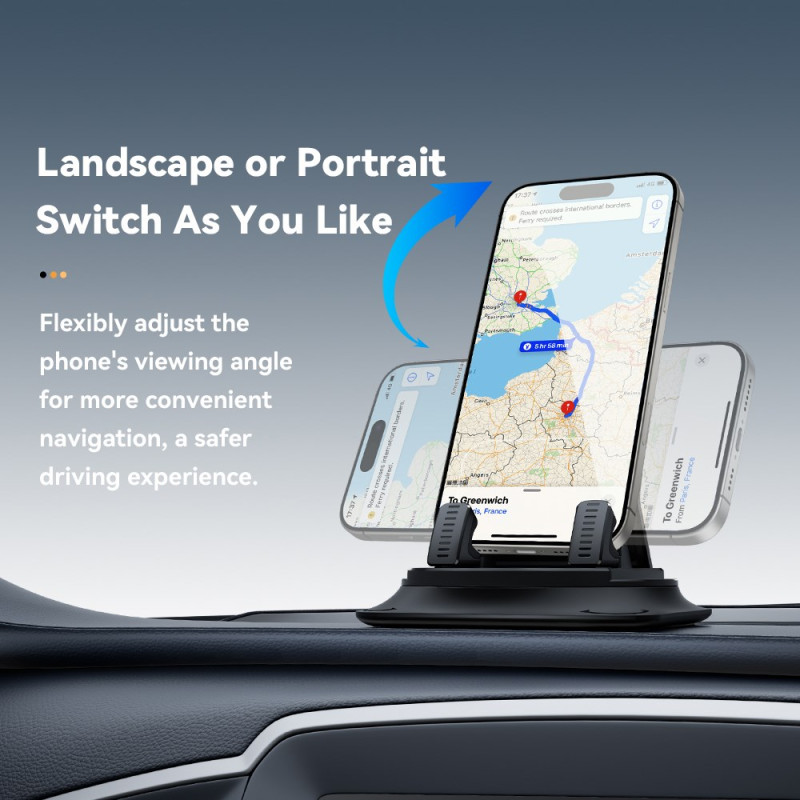 La colocación óptima del navegador en la consola central es esencial para la seguridad activa del conductor. Este soporte ESSAGER utiliza un fuerte adhesivo para garantizar una fijación fiable en una gran variedad de superficies. El cabezal giratorio de 360 grados permite un ajuste completo, facilitando el cambio entre los modos vertical y horizontal. El diseño ha sido pensado para manejarlo con una sola mano, minimizando las distracciones durante la conducción. Fabricado en plástico ABS resistente y silicona protectora, sujeta con seguridad dispositivos de 7 mm a 17 mm de grosor.
