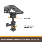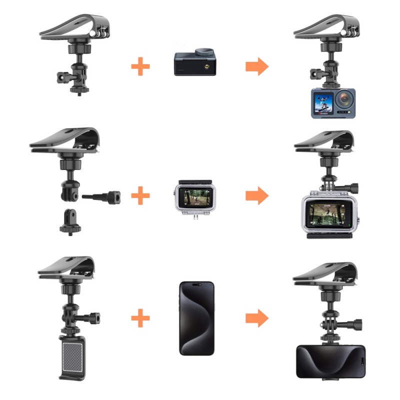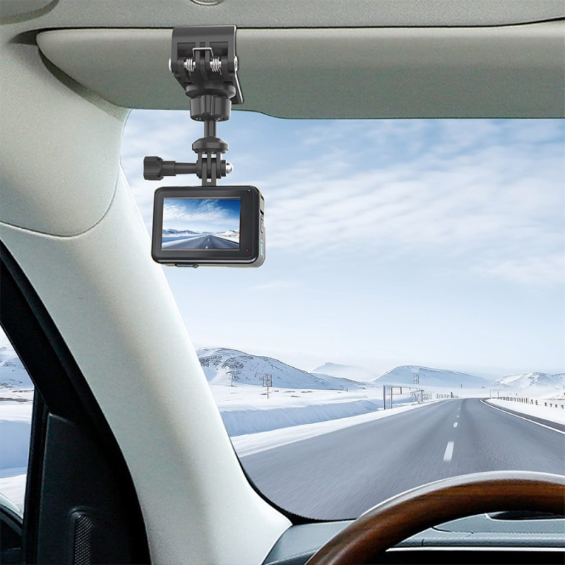 El soporte universal para visera de coche le permite montar de forma segura su smartphone o cámara sin obstruir la visibilidad. Su robusto clip se sujeta firmemente al parasol, proporcionando una instalación estable sin riesgo de dañar la superficie. Gracias a su giro de 360° e inclinación de 180°, podrá disfrutar de un ángulo de visión ideal al navegar o hacer fotos. Compatible con smartphones de 5,5 a 8,5 cm de ancho y cámaras con rosca estándar de 1/4", se instala fácilmente en segundos para una conducción más segura y cómoda.