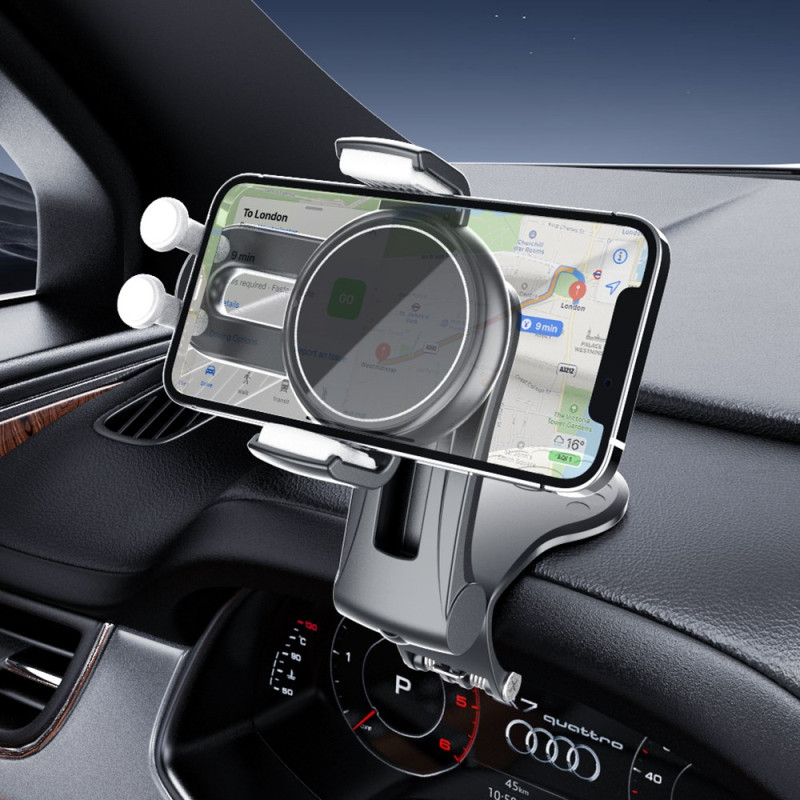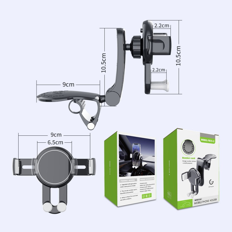 El soporte para teléfono en el salpicadero YB25-3 combina elegancia y funcionalidad para una conducción más segura y cómoda. Su elegante diseño se integra a la perfección en el interior del coche, mientras que su robusto clip proporciona una excelente estabilidad. Ajustable y compatible con la mayoría de los smartphones, permite una rápida instalación con una sola mano y sin herramientas. Fabricado con ABS resistente y silicona, sujeta el dispositivo con seguridad incluso en carreteras con baches, y también se puede utilizar como soporte de la placa de aparcamiento.