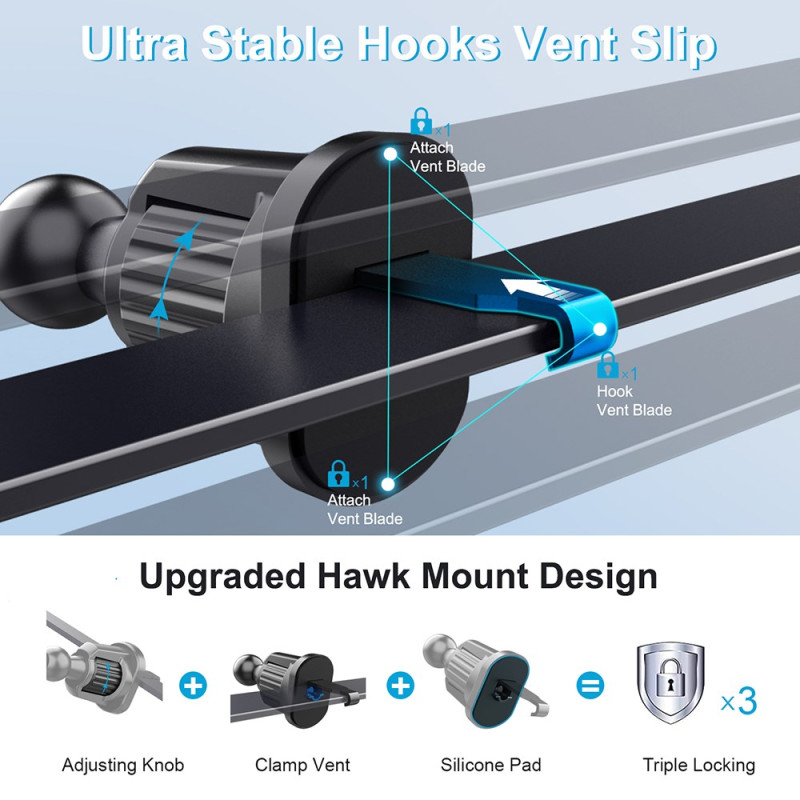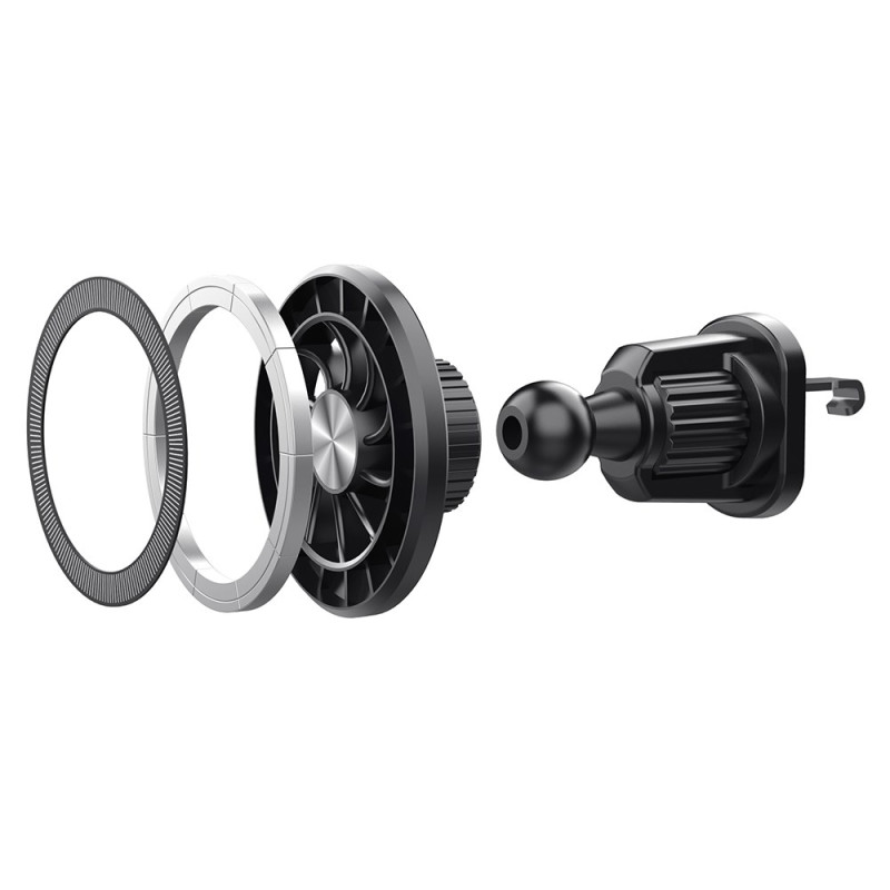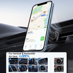 El soporte magnético para teléfono con rotación de 360° para rejillas de ventilación proporciona una sujeción segura, estable y práctica para todos tus viajes. Equipado con 8 imanes N50 de doble capa, sujeta el smartphone con firmeza, incluso en carreteras irregulares. Su cabezal giratorio permite un ajuste suave de 360°, para un ángulo de visión ideal en modo vertical u horizontal. Su sistema de cierre con gancho metálico garantiza una sujeción segura en las rejillas de ventilación. Compatible con todos los smartphones de 4 a 7 pulgadas, se coloca y se quita rápidamente con una sola mano.
