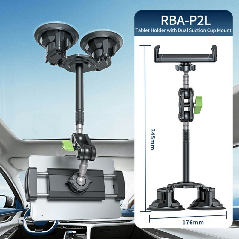 El soporte universal de ventosa doble RBA-P2L es una forma ultraestable y versátil de sujetar tabletas y smartphones. Sus dos ventosas de 176 mm con tecnología de succión por vacío garantizan una sujeción segura en cualquier superficie lisa. Su brazo ajustable y giratorio permite colocar el dispositivo en el ángulo ideal para trabajar, navegar o entretenerse. Compatible con dispositivos de 12 a 25,5 cm de ancho y hasta 1,5 cm de grosor, garantiza la máxima flexibilidad. Su altura extendida de 34,5 cm mejora la comodidad y la ergonomía del usuario.
