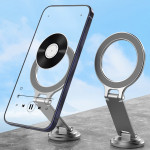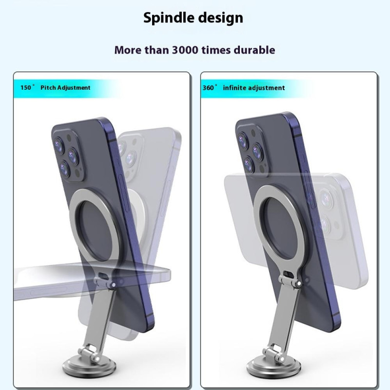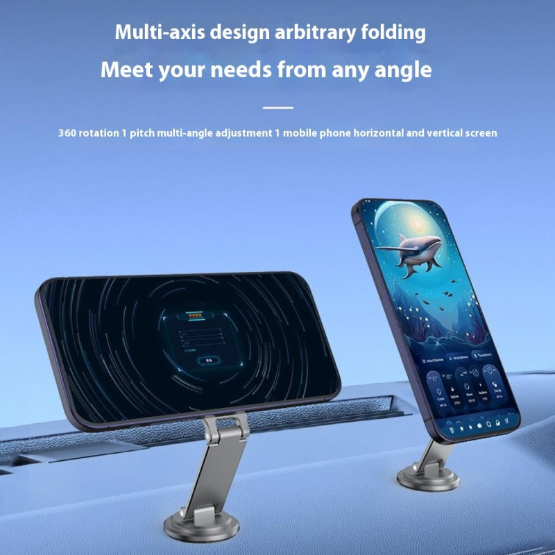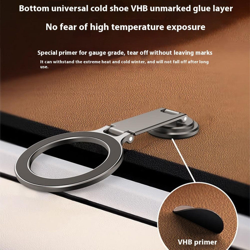 Este soporte magnético plegable para iPhone proporciona una sujeción fiable y elegante para su uso en el coche. Compatible con las series iPhone 12 a 16 gracias a la fijación directa MagSafe o mediante una funda magnética, también puede alojar otros smartphones con el anillo magnético suministrado. Su brazo de aleación mecánica proporciona una sujeción firme sin hundirse, mientras que sus dos ejes giratorios permiten ajustar con precisión el ángulo de visión. Plegable y discreto, ocupa un espacio mínimo. Su base adhesiva reutilizable garantiza una sujeción firme sin dejar marcas.