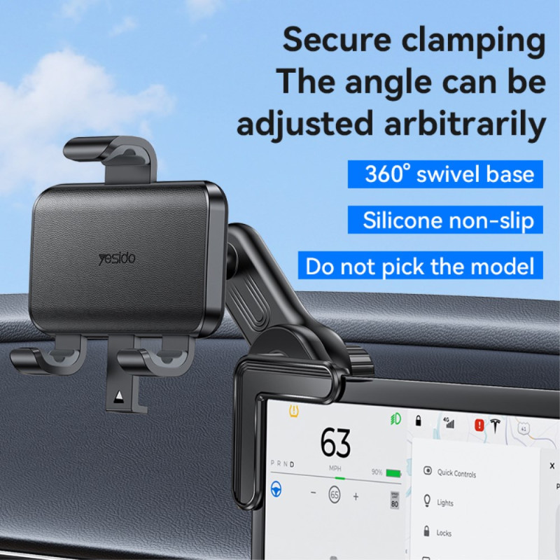 El soporte para teléfono con pinza para pantalla flotante YESIDO ofrece una solución estable, práctica y elegante para mantener el smartphone perfectamente visible en cualquier circunstancia. Diseñado para pantallas de hasta 2,7 cm de grosor, proporciona una sujeción segura gracias a su sistema de doble refuerzo que combina un adhesivo lavable y una rueda de sujeción. Su brazo giratorio de 360° te permite ajustar el ángulo de visión a tus necesidades, ya estés trabajando, siguiendo un tutorial o viendo un vídeo. Compatible con teléfonos de hasta 90 mm de ancho, está fabricado en ABS con textura de cuero PU para un aspecto duradero y de primera calidad.