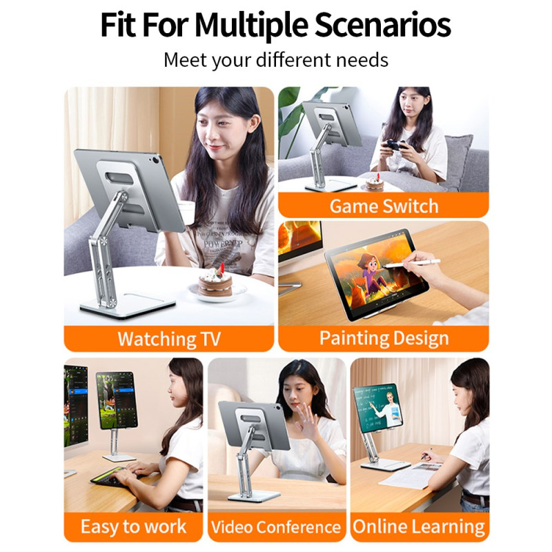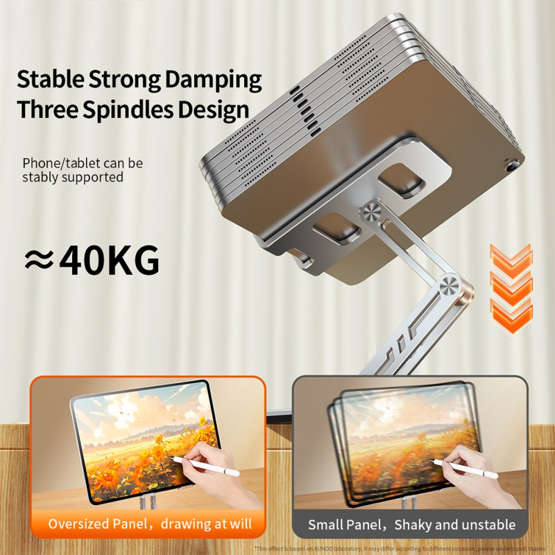 El soporte de escritorio ajustable XUNDD ofrece una estabilidad excepcional gracias a su diseño de aleación de aluminio, acero al carbono y almohadilla de silicona antideslizante. Su resistente sistema de tres ejes proporciona un ajuste suave y preciso a la vez que soporta hasta 40 kg, lo que lo hace ideal para pantallas y dispositivos pesados. La base extra ancha garantiza un ajuste perfecto sin riesgo de vuelco. Diseñado para optimizar la ventilación, favorece la disipación del calor durante un uso prolongado. Plegable y portátil, sirve para todo: juegos, trabajo, vídeo, dibujo, aprendizaje y mucho más.