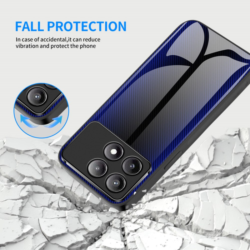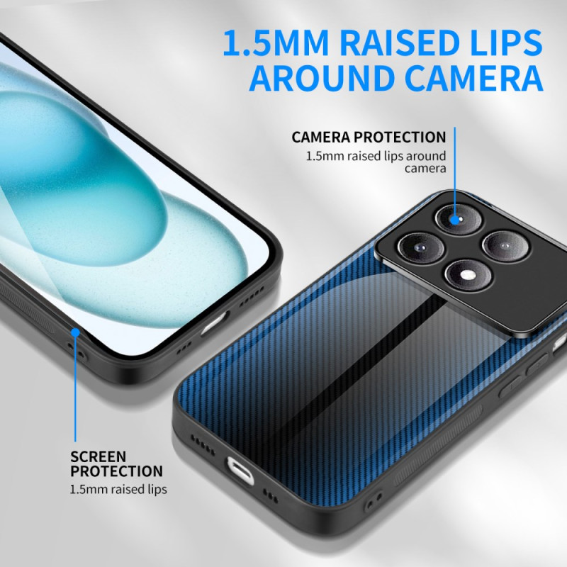 Con una elegante textura de fibra de carbono, parte trasera de cristal templado resistente a los arañazos y suaves bordes de silicona para una protección total...