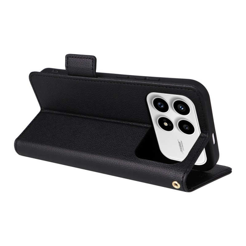Protege tu smartphone con estilo con esta funda monedero de piel de PU con textura de lichi. Tiene múltiples ranuras para tarjetas y dinero, un soporte manos libres integrado y un cierre magnético seguro.