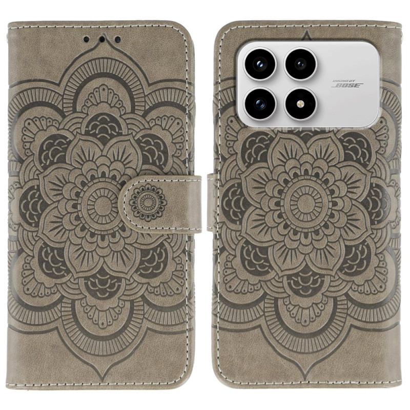 Descubra nuestra elegante funda cartera con un magnífico motivo Mandala grabado. Con múltiples compartimentos para tarjetas y dinero en efectivo, una práctica función de soporte y una colgante