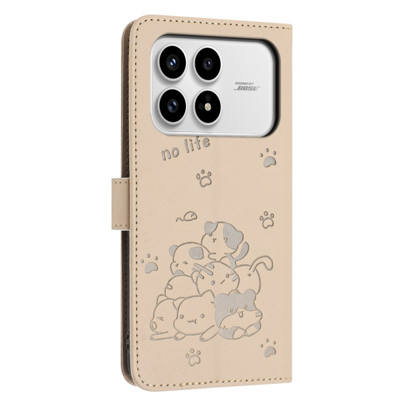 Étui portefeuille élégant avec motif chats gravé pour votre Xiaomi Poco F8 Pro. Combine style et fonctionnalité avec plusieurs emplacements pour cartes, support pliable et dragonne amovible. Protection complète contre les chocs et les rayures.