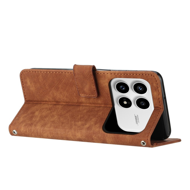 Étui portefeuille élégant avec motifs en relief pour Poco F8 Pro. Doté de 3 fentes pour cartes, d'une fermeture magnétique sécurisée et d'une fonction support pratique pour une expérience mains libres optimale.