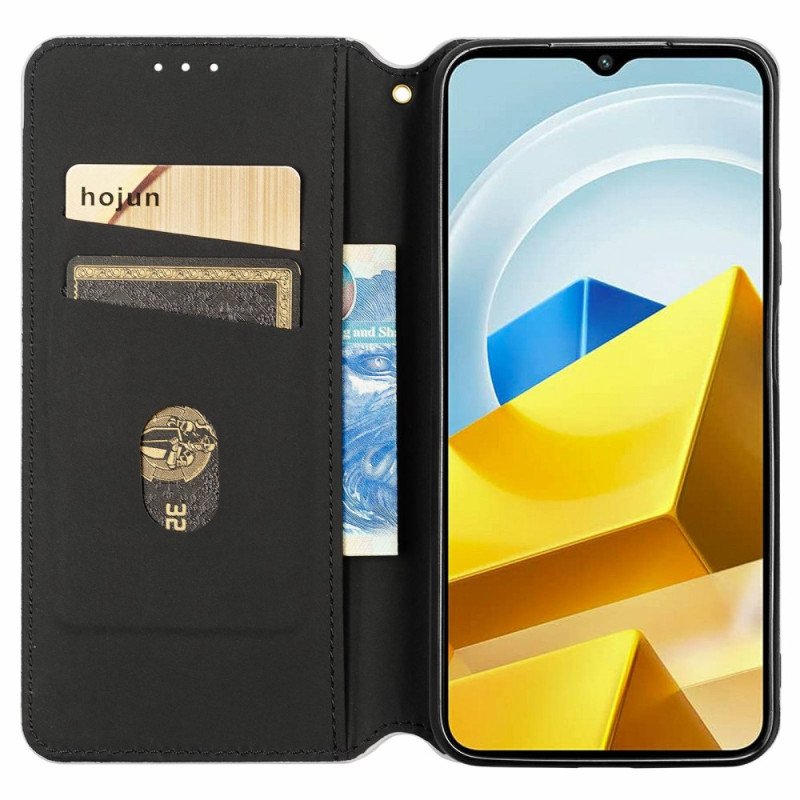 Tu Poco M5 tiene un aspecto estupendo con esta funda abatible de piel sintética con cubos 3D que asegura el teléfono con encanto.