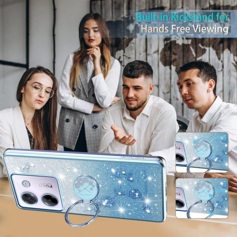 Protégez votre Xiaomi Poco M7 Pro 5G avec style grâce à cette coque élégante ornée de fleurs éternelles et de strass pailletés. Son anneau support rotatif permet un visionnage mains libres confortable et une prise en main sécurisée au quotidien.