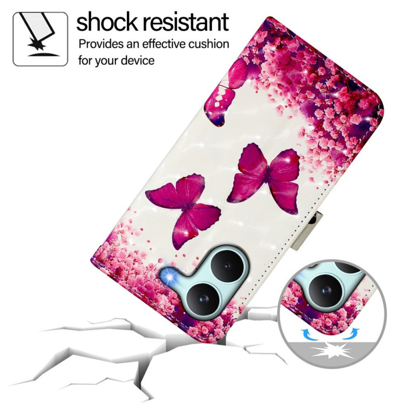 Protege tu smartphone con estilo con esta elegante funda monedero adornada con mariposas rosas.