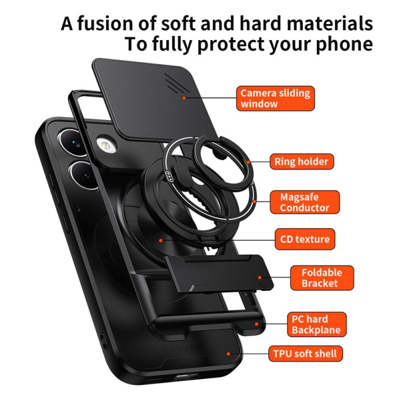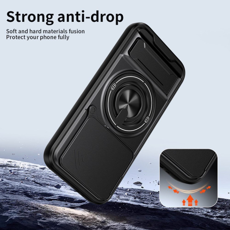 Su doble capa de protección garantiza la resistencia a golpes y arañazos, mientras que su anillo giratorio y su soporte