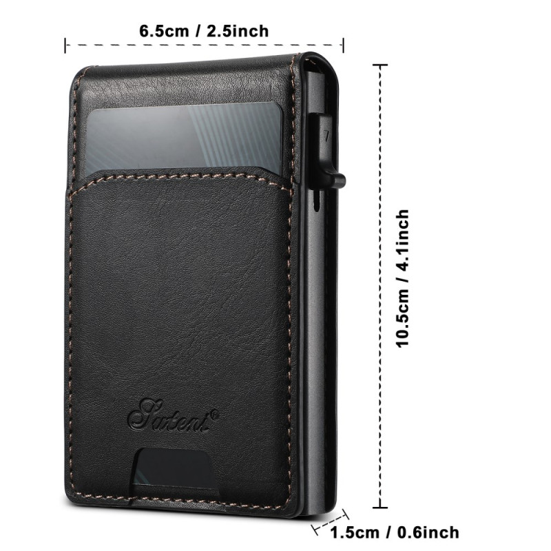 Descubra nuestro tarjetero magnético SUTENI, que combina elegancia y funcionalidad. Fabricado en piel de PU texturizada de alta calidad, tiene capacidad para 8 tarjetas y función de expulsión automática.