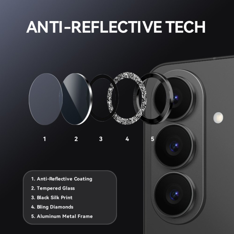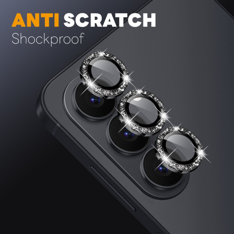 Protégez l'objectif photo de votre Samsung Galaxy S26 avec élégance. Ce set comprend un film en verre trempé et un protecteur métallique pailleté pour une couverture complète. Design brillant et glamour qui sublime votre smartphone.