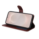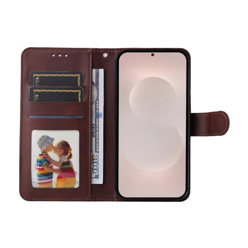 Étui portefeuille élégant en cuir PU texture veau pour Samsung Galaxy S26 Ultra. Comprend 3 emplacements pour cartes, support intégré, dragonne détachable et protection d'écran en verre trempé ultra-fin 0.18mm compatible déverrouillage ultrasonique.