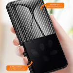 Protección de triple capa que combina un diseño de fibra de carbono degradado y cristal templado transparente. Perfil ultrafino de 0,5 mm para una sensación de ligereza absoluta. Los bordes elevados protegen la pantalla y las cámaras de arañazos e impactos.