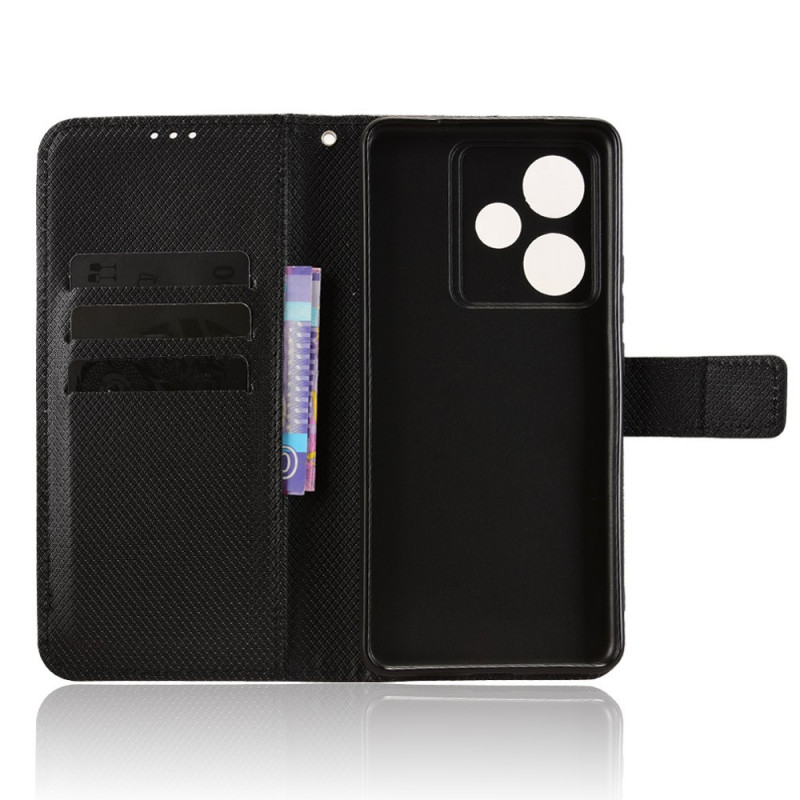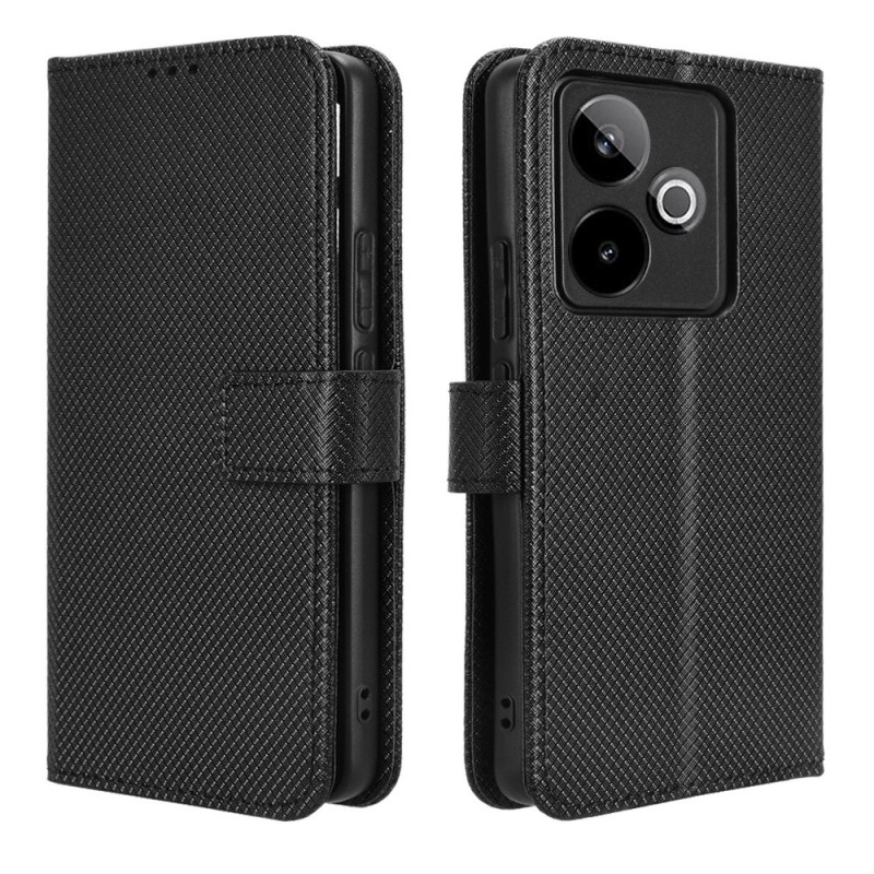 Elegante funda monedero con sofisticada textura de diamante para tu Realme GT7 5G. Incluye varias ranuras para tarjetas, un bolsillo para billetes y un cierre magnético seguro. La práctica colgante de mano facilita su transporte.