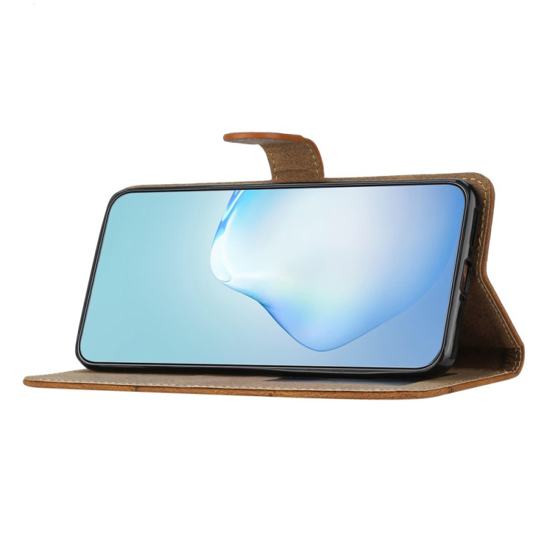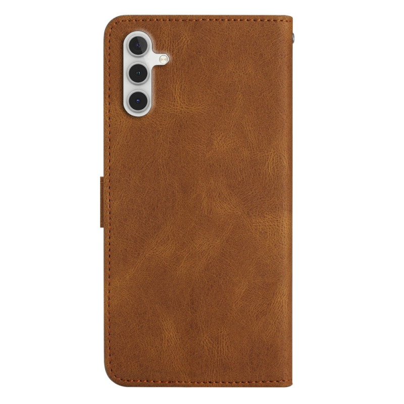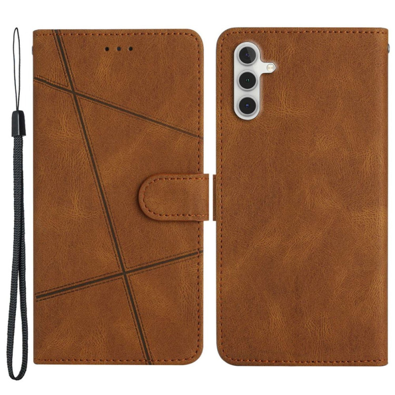 La funda con colgante Lines de estilo cuero ofrece una protección total y multifuncional para el Samsung Galaxy A04s.