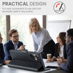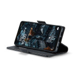Esta funda de piel de PU y TPU ofrece una protección completa con tecnología de bloqueo RFID, almacenamiento de tarjetas y billetes, soporte de visualización manos libres y doble cierre magnético.