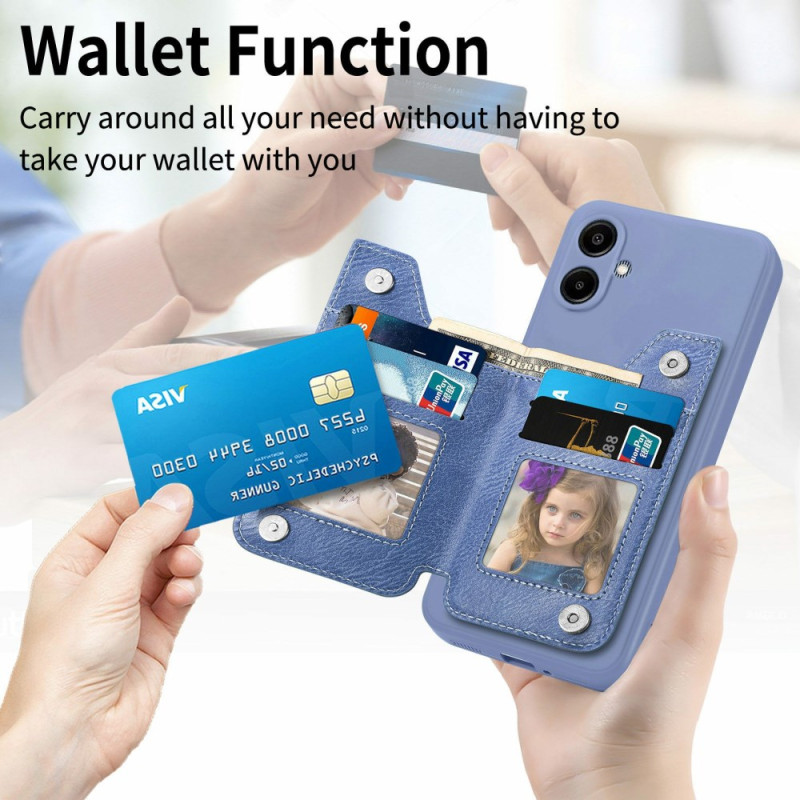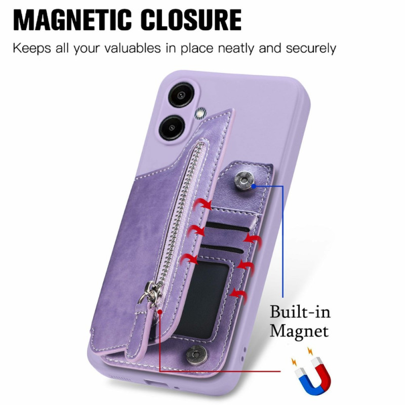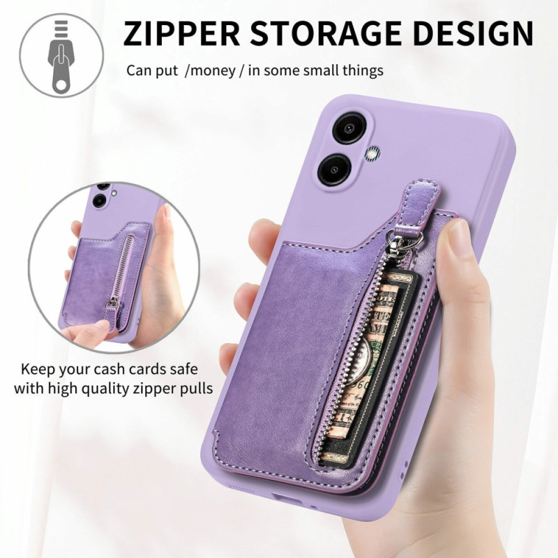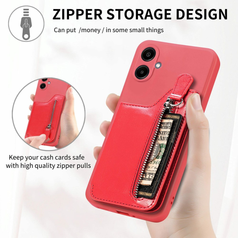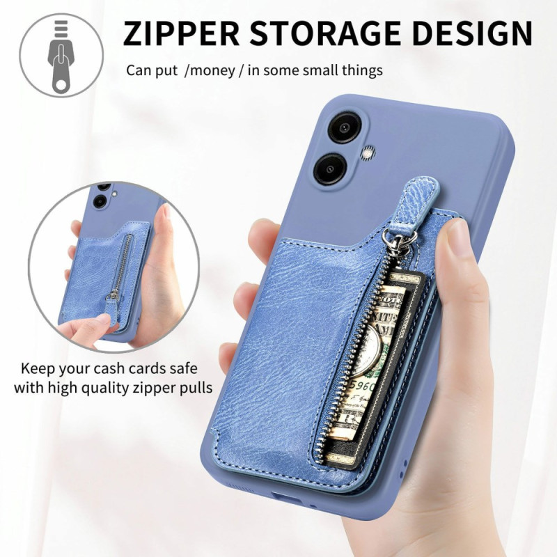 Con ranuras para tarjetas, un bolsillo con cremallera y función de soporte, esta funda combina practicidad y estilo para tu smartphone.