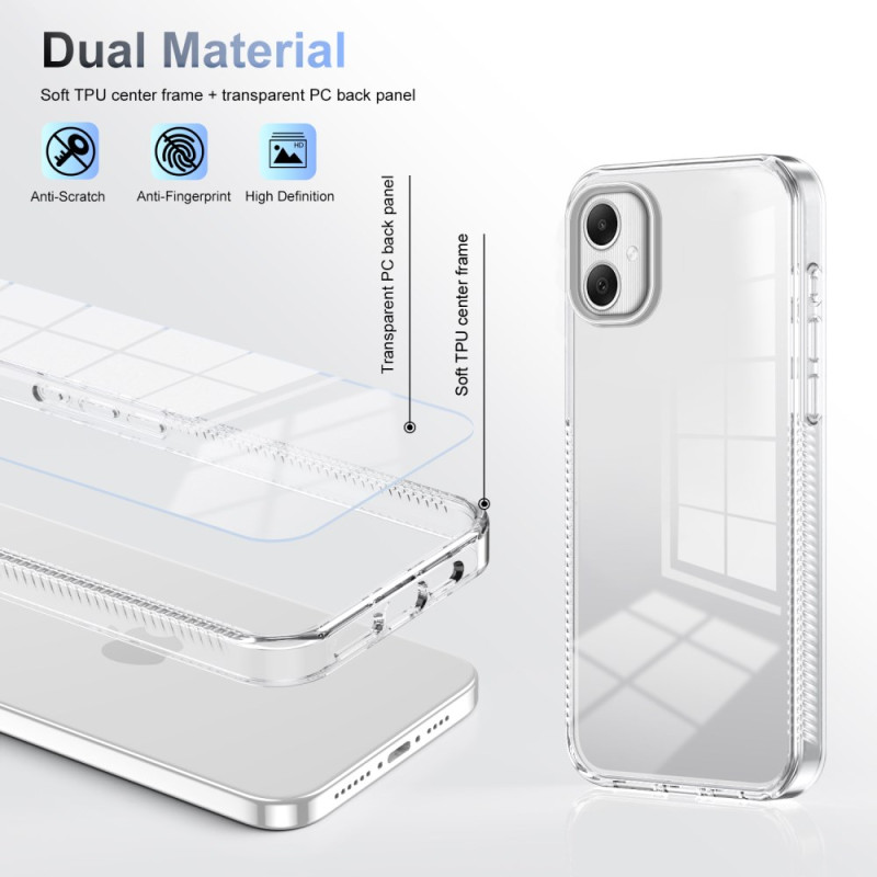 Découvrez notre coque de protection transparente pour Samsung Galaxy A06. Fabriquée avec un cadre en TPU souple et un panneau arrière en PC, elle offre une excellente protection contre les chocs tout en préservant l'esthétique de votre téléphone.