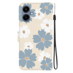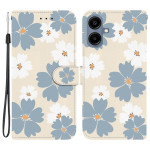 Elegante funda tipo cartera con motivo de margaritas azules para Samsung Galaxy A07 5G / 4G / A06. Práctico diseño 2 en 1 con soporte plegable, tarjetero integrado y colgante de mano a juego. Protección magnética completa contra los golpes y arañazos cotidianos.