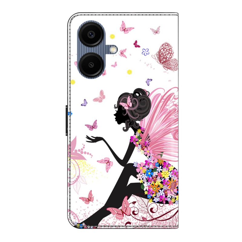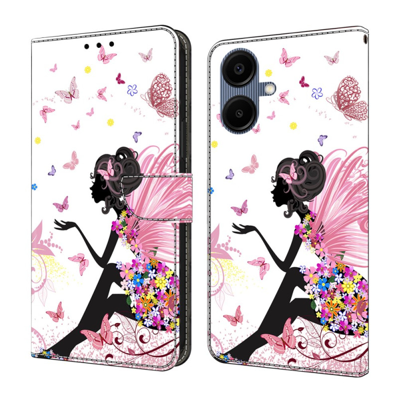 Elegante funda cartera con motivo de mariposa femenina para Samsung Galaxy A07 5G / 4G. Diseño de solapa con soporte plegable integrado, 2 ranuras para tarjetas y compartimento para efectivo. Cierre magnético seguro para una protección completa.