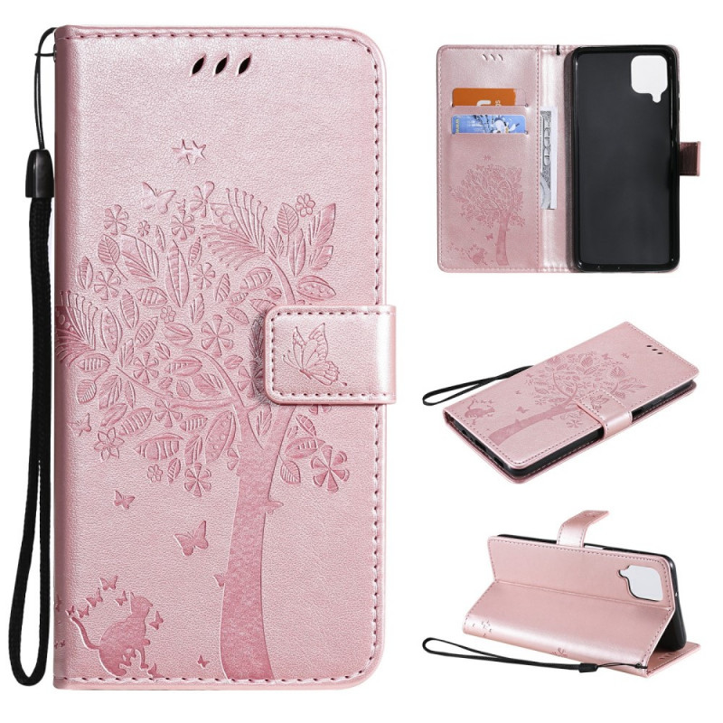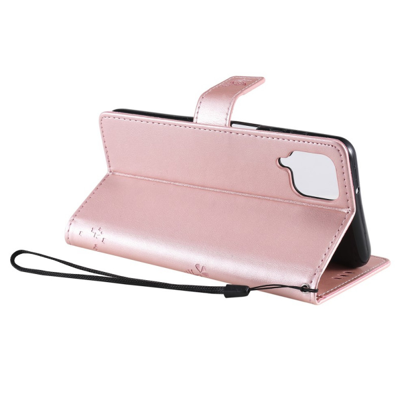 La housse Chat et Papillons Effet Cuir, avec rabat magnétique, assure la protection de votre Samsung Galaxy A12 / M12.
