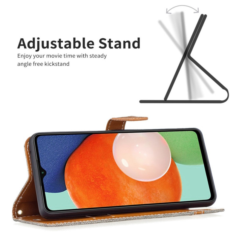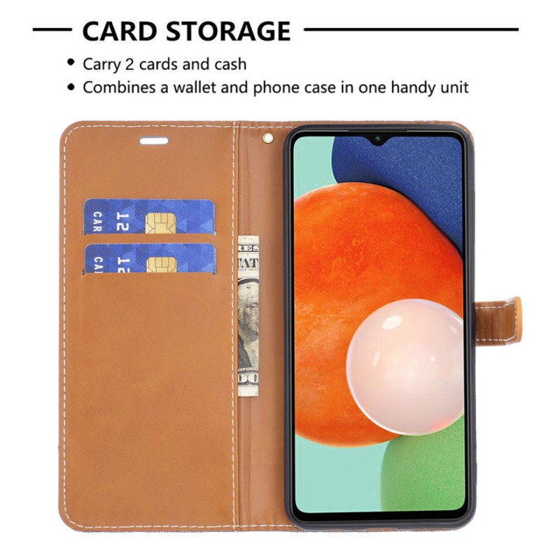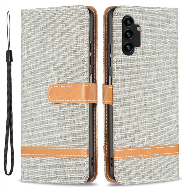 Una funda de piel sintética recubierta de tela que viene con una colgante para proteger todo tu Samsung Galaxy A13 con estilo.