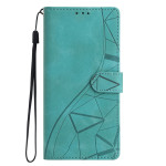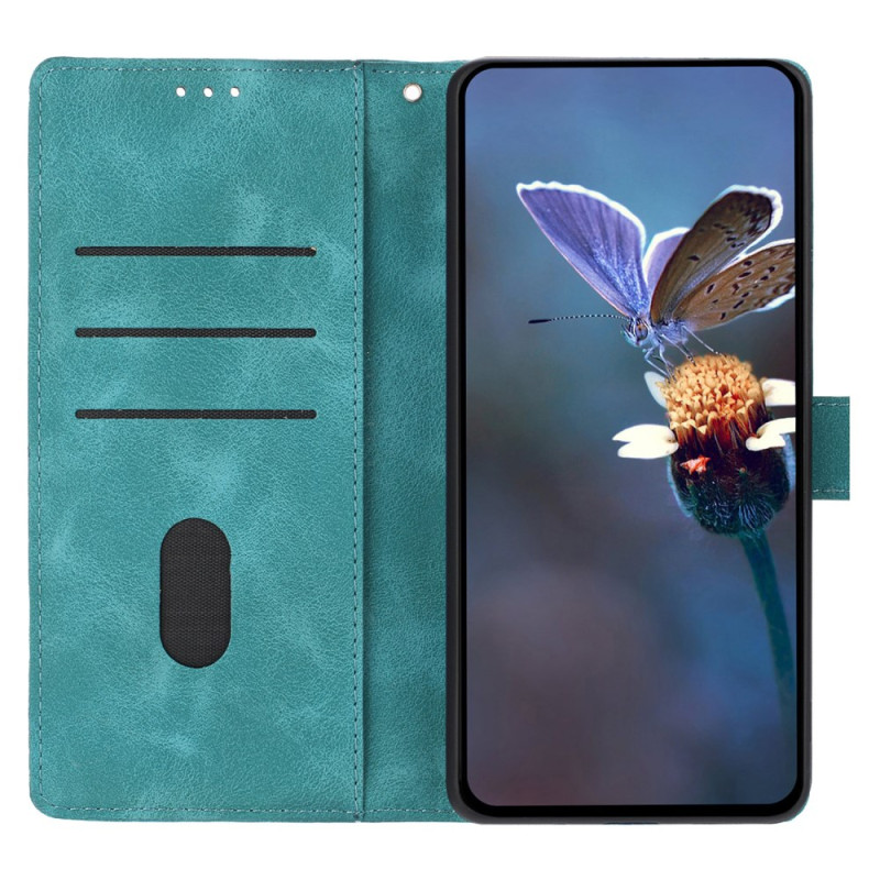 Étui portefeuille élégant pour Samsung Galaxy A37 5G. Protection intégrale en cuir PU et TPU avec motif triangle gravé. Fonction support ajustable, 3 emplacements cartes, poche latérale et fermeture magnétique sécurisée. Livré avec dragonne amovible.