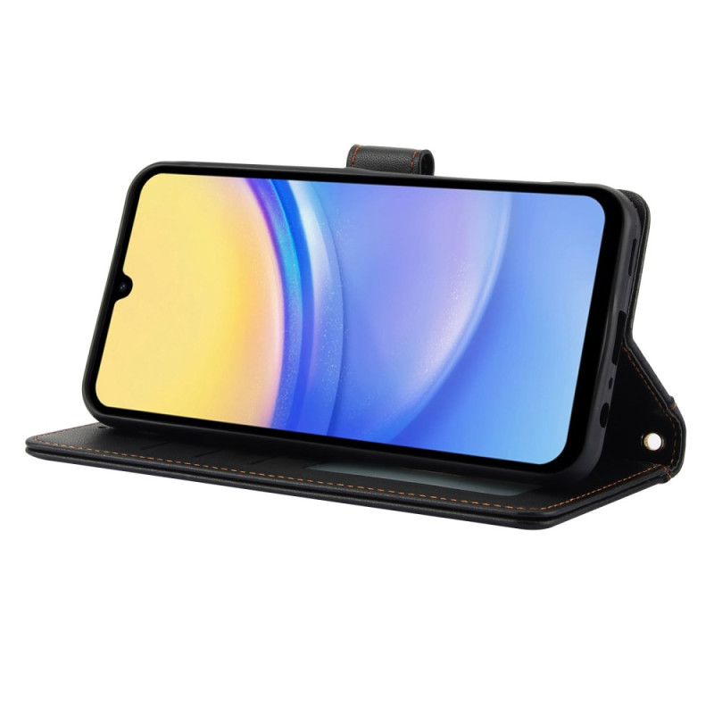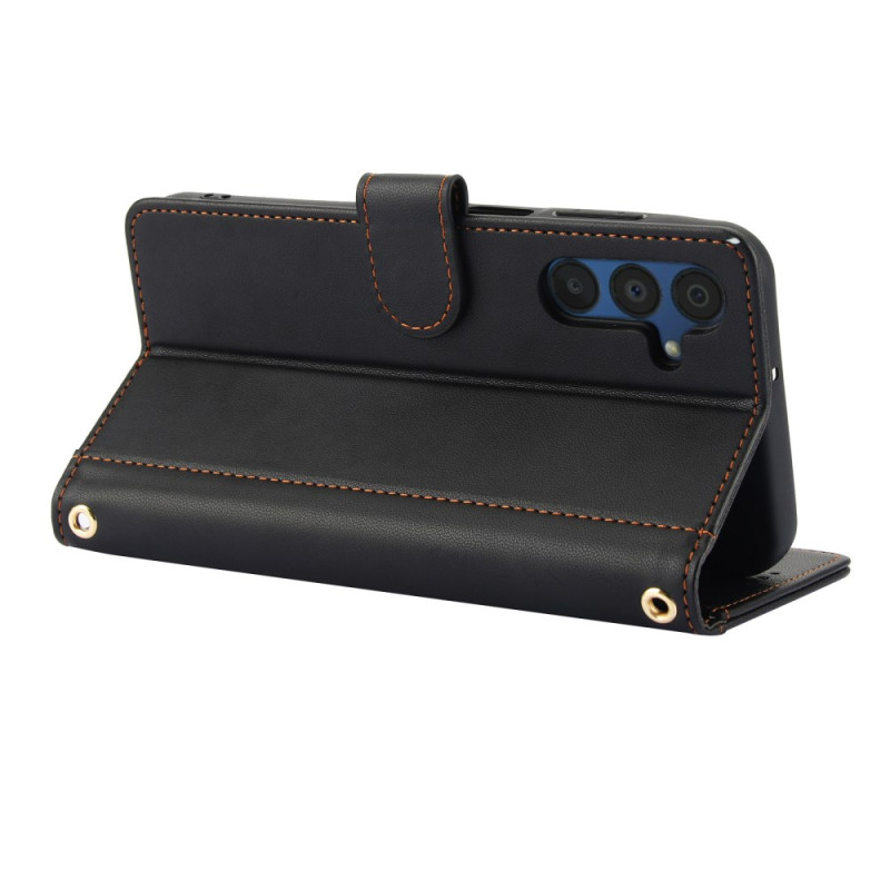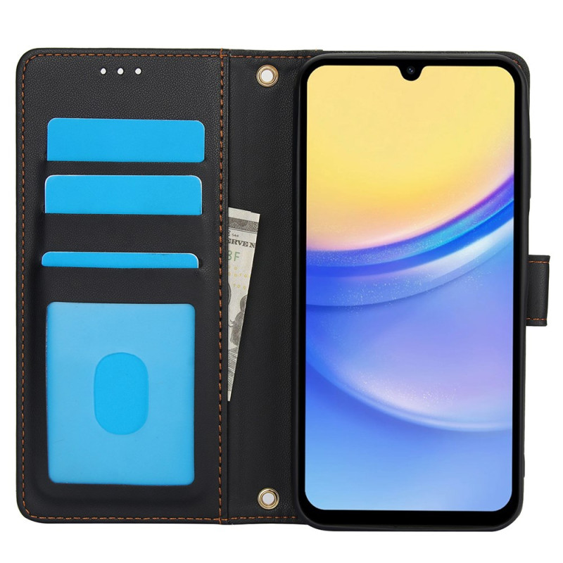 Étui portefeuille élégant en cuir PU avec support intégré pour votre Samsung Galaxy. Comprend 3 emplacements pour cartes, 1 poche pour espèces et une dragonne détachable. Fermeture magnétique sécurisée pour une protection complète au quotidien.