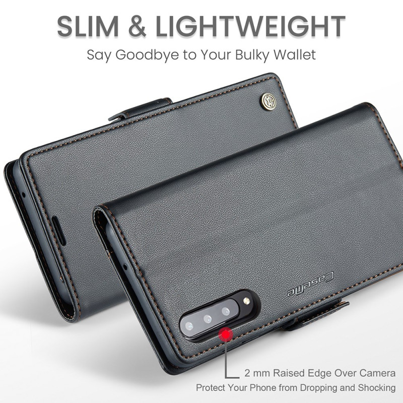 Descubra nuestra funda de piel de gama alta para Samsung Galaxy A30s / A50 / A50s. Con tecnología avanzada de bloqueo RFID, ofrece una protección completa a la vez que sirve de práctica cartera con 3 ranuras para tarjetas. Su soporte integrado permite tener las manos libres, mientras que su elegante diseño combina funcionalidad y estilo.