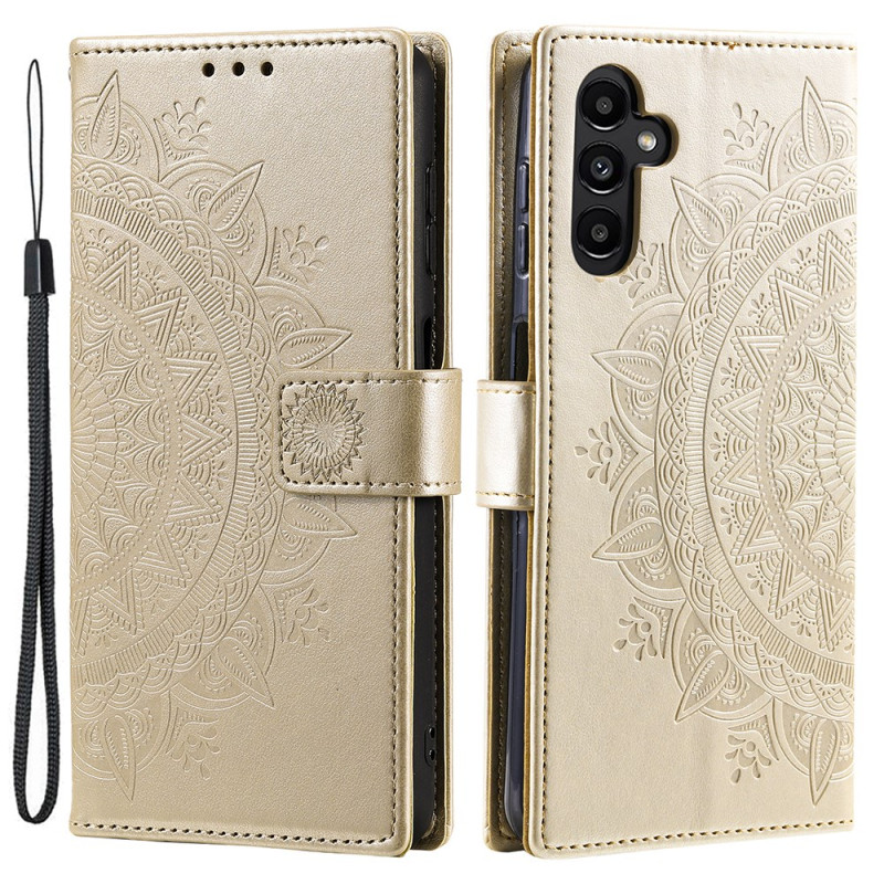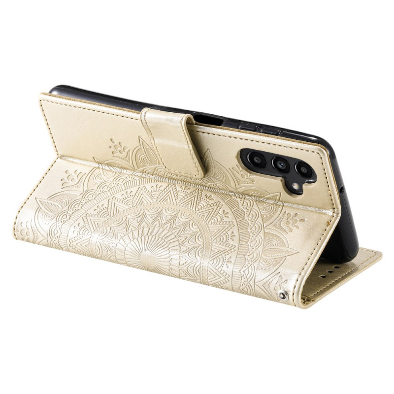 Découvrez notre housse Mandala Soleil pour Samsung Galaxy A55 5G, offrant une double protection grâce à sa couche extérieure en simili cuir et sa coque intérieure souple en silicone.