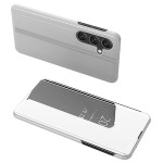 Descubre nuestra funda elegante y funcional para Samsung Galaxy A56 5G. Fabricada en piel de PU de alta calidad con una superficie de espejo galvanizado, ofrece una protección completa con una ventana de visualización translúcida y un soporte integrado.