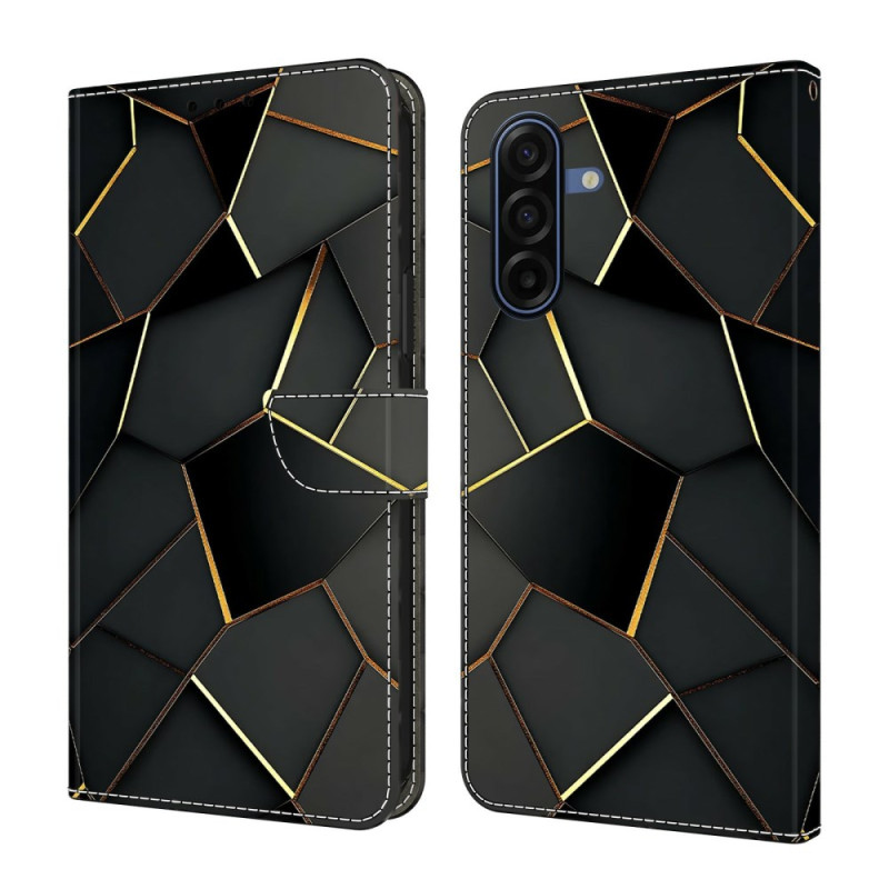 Étui portefeuille élégant pour Samsung Galaxy A57 5G avec motifs sophistiqués noir et or. Design à rabat avec support réglable, fermeture magnétique sécurisée et compartiments pour cartes. Protection complète contre les chocs et rayures au quotidien.
