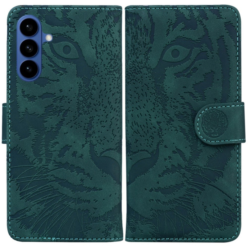 Protege tu Samsung Galaxy A57 5G con estilo gracias a esta funda cartera de piel de primera calidad. Su refinado diseño presenta un distintivo motivo de tigre grabado, que combina estilo y funcionalidad con sus ranuras y tarjetero integrados.