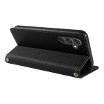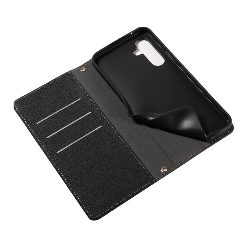 Descubra esta elegante funda cartera para Samsung Galaxy A57 5G que combina estilo y protección. Con una refinada textura de lichi, compartimentos para tarjetas, una práctica función de soporte y una colgante de muñeca desmontable para facilitar el transporte diario.