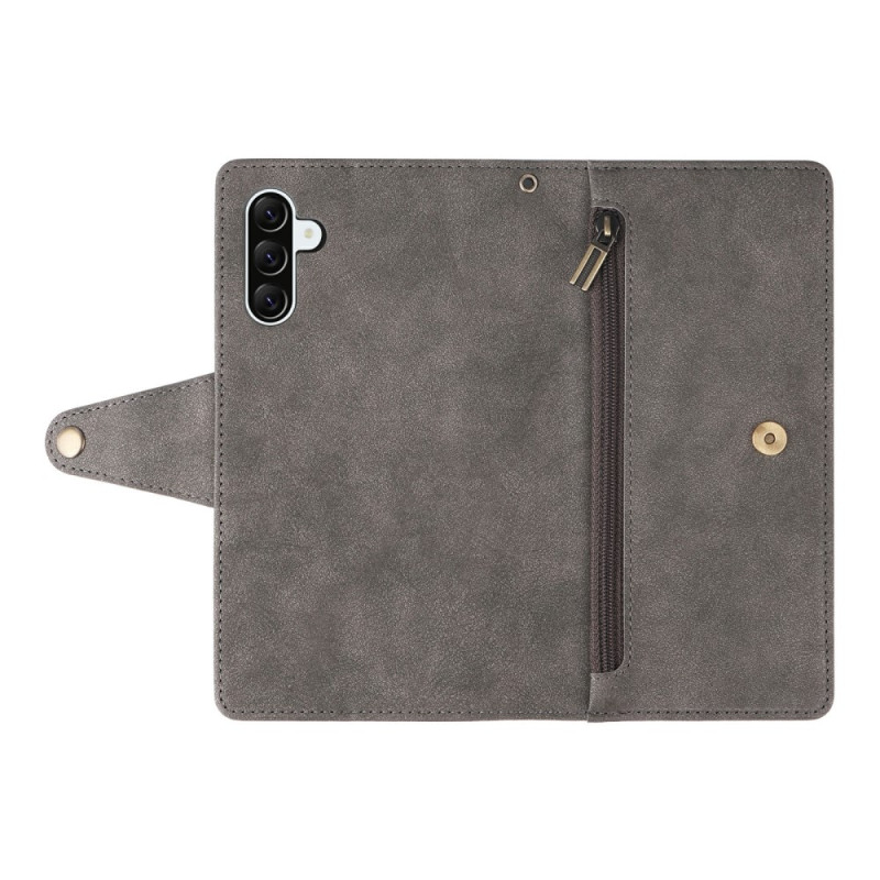 Protege tu Samsung Galaxy A57 5G con estilo gracias a esta funda cartera de piel de doble capa. Adornada con elegantes remaches, combina una protección óptima con una funcionalidad práctica gracias a sus compartimentos para tarjetas, su bolsillo con cremallera y su colgante de mano.