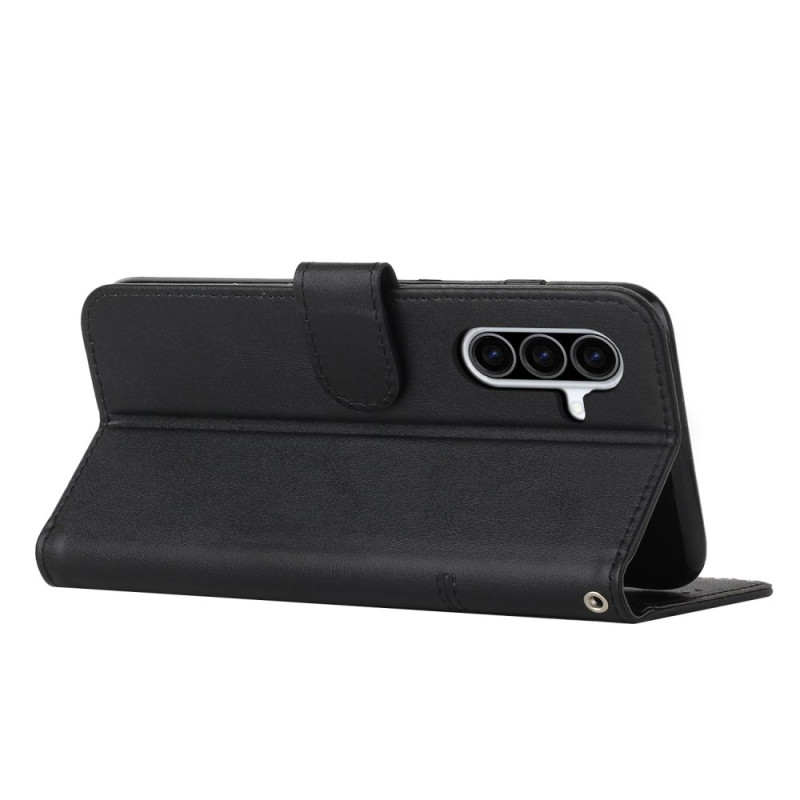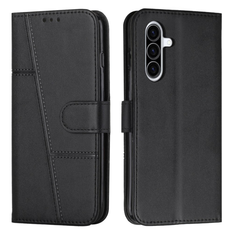 Elegante funda cartera para Samsung Galaxy A57 5G que combina protección y practicidad. Incluye 2 ranuras para tarjetas, 1 compartimento para fotos y 1 compartimento para dinero. Soporte manos libres plegable integrado y cierre magnético seguro.
