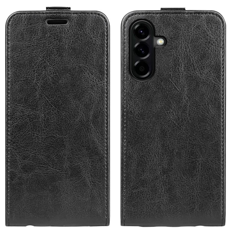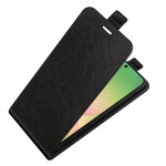 Descubre nuestra elegante funda con solapa vertical para Samsung Galaxy A57 5G. Fabricada en piel de PU de primera calidad con textura de grano de silla de montar, combina estilo y practicidad con su tarjetero integrado y su cierre magnético seguro para una protección óptima.