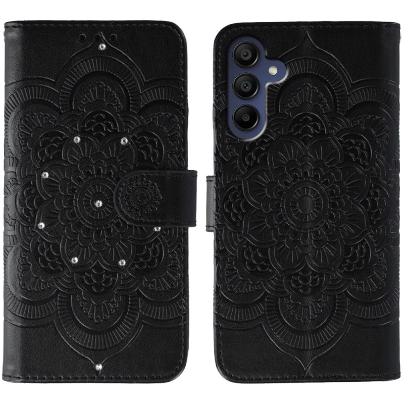 Proteja su Samsung Galaxy A57 5G con estilo gracias a esta funda con solapa con un magnífico motivo Mandala y brillantes strass. Aprovecha sus prácticas funciones: tarjetero integrado, colgante de mano extraíble y soporte de visualización.