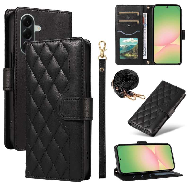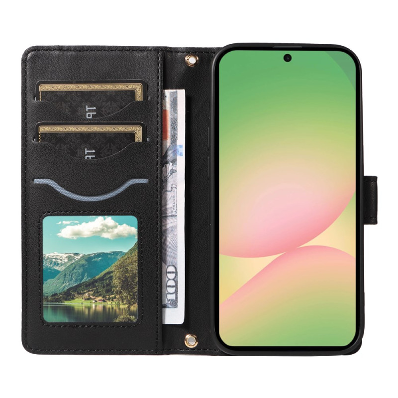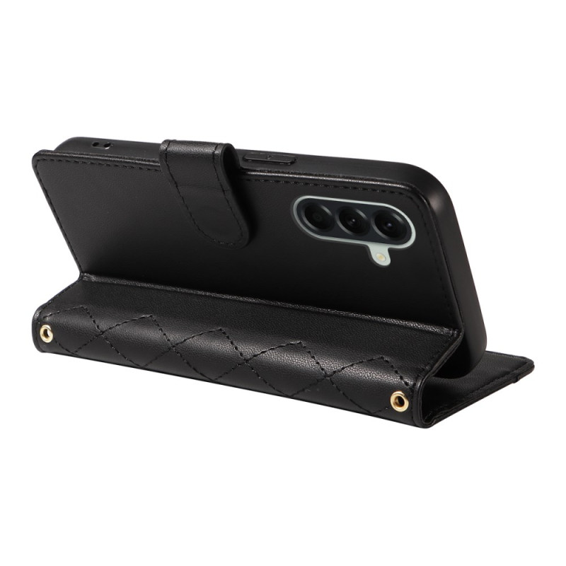 Protege tu Samsung Galaxy A57 5G con estilo gracias a esta funda cartera multifunción. Su sofisticado diseño en forma de diamante combina estilo y practicidad, con 3 ranuras para tarjetas, un bolsillo para notas y un soporte de visualización integrado.