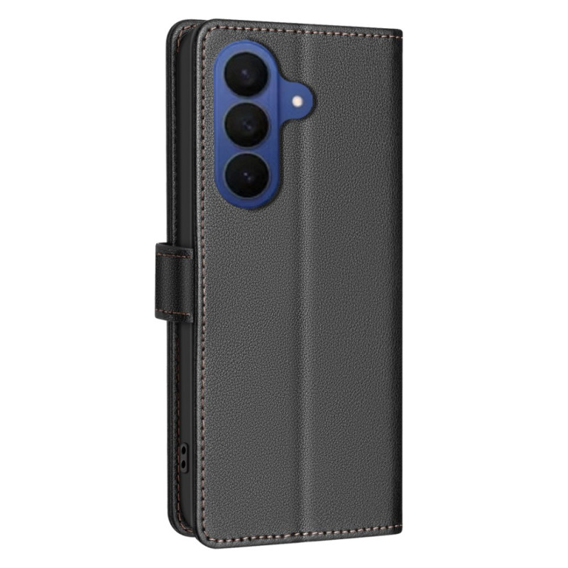 Descubre la elegancia y la seguridad con esta funda cartera de piel de PU texturizada para Samsung Galaxy A57 5G. Con tecnología de bloqueo RFID, protege tus datos personales a la vez que ofrece 3 ranuras para tarjetas y 1 compartimento para efectivo.