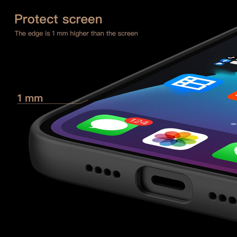 - Protección de pantalla integrada: los bordes elevados de 1 mm por encima de la pantalla ofrecen protección adicional cuando el teléfono se coloca boca abajo sobre una superficie plana, evitando grietas y arañazos.