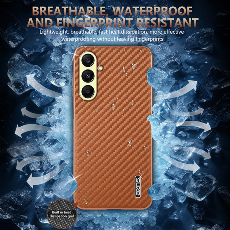 Protege tu Samsung Galaxy A57 5G con estilo gracias a esta funda AZNS con un sofisticado diseño de fibra de carbono. Fabricada en TPU y PU de alta calidad, ofrece una protección óptima a la vez que mantiene un perfil fino y ligero.