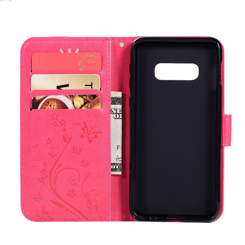 La funda de mariposa y flor con solapa magnética garantizará la protección de tu Samsung Galaxy S10e.